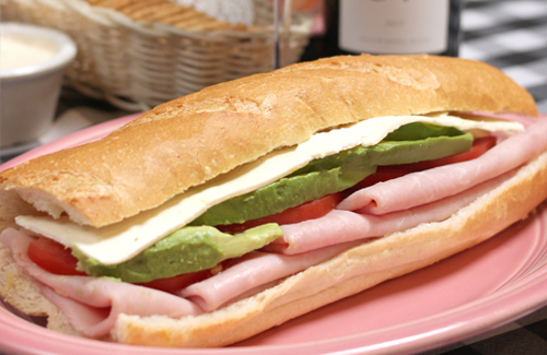 De pechuga de pavo con queso, lechuga, aguacate y aderezo de yogurt.