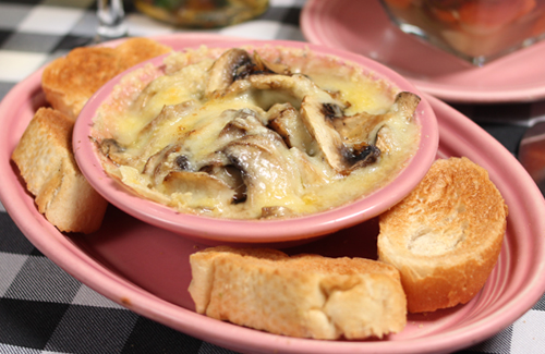 200g de filete, cubierta de champiñones frescos y gratinada.