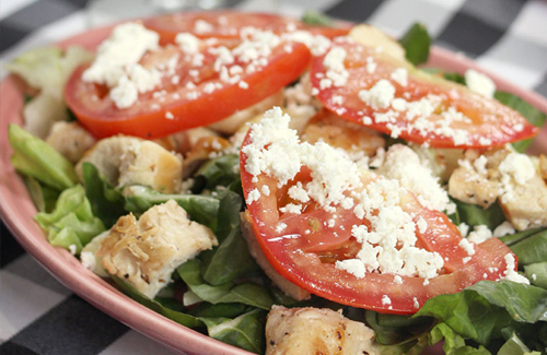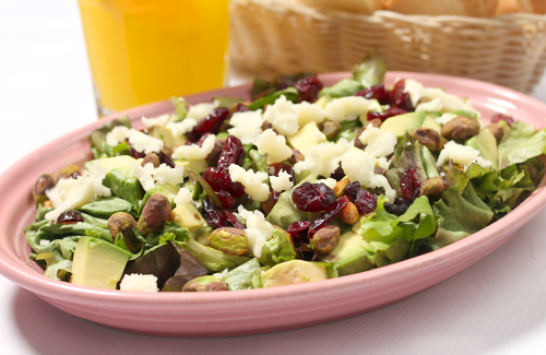 Mix verde, aguacate, arándanos, pistaches, queso de cabra y aderezo de blueberry.
