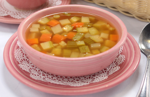 Con crema, fruta caramelizada y ralladura de zanahoria.